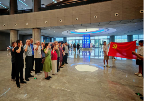 在博物馆大厅,两个支部党员重温了入党誓词。随后,在讲解员的带领下,大家依次参观了《创世王都》《百年史话》《豫声豫调》等展厅,通过一件件珍贵的文物和生动的场景复原,党员们仿佛穿越时空,回到了郑州作为王都的辉煌岁月,深刻感受到了郑州悠久的历史和灿烂的文化。