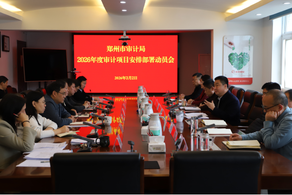 日前,郑州市审计局召开2026年度审计项目安排部署动员会议,深入学习贯彻习近平总书记关于审计工作的重要指示批示精神,落实全国、全省审计工作会议部署,总结前期项目谋划成果,安排部署2026年度审计项目任务。